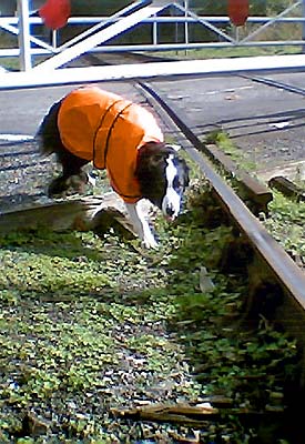 Deployment of the DOG involves a COSS, two lookouts, a handler, an operations manager, three animal welfare officers and a back-up cowboy who fulfils the 'belt and braces' requirement. Having wagged her tail and bitten through the COSS form to confirm that she has understood the briefing, a safe system of work is established involving the appointment of a donkey as site warden. This allows the DOG to perform its duties anywhere within the railway boundary but not within 30cm (1 foot) of any fence unless goggles, a hardhat and safety harness is worn.