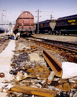 And it's not just the big stuff. Short lengths of rail, discarded fishplates and loose troughing lids are a magnet for vandals. And there's plenty of ammunition at Doncaster (left) and Ardsley.