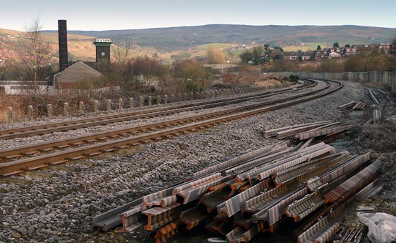 With redundant cable hangers in one cess and tonnes of scrap in the other, where should staff go when trains appear around this busy, high-speed curve? Diggle 2007