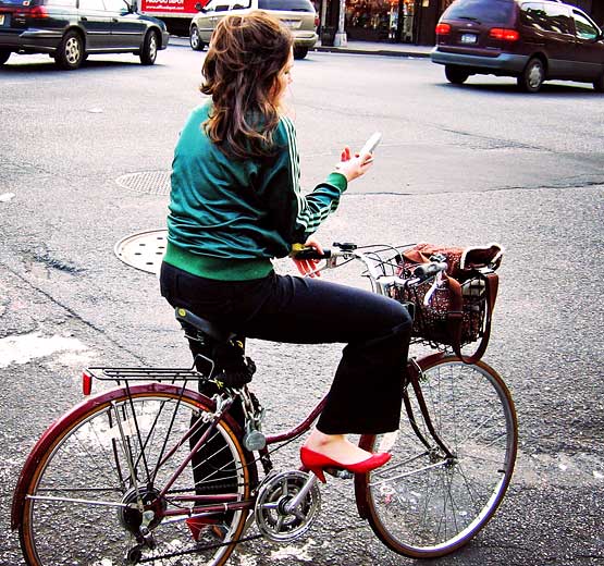 A teen demonstrates exemplary texting skills in her safety footwear.