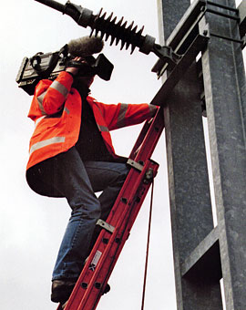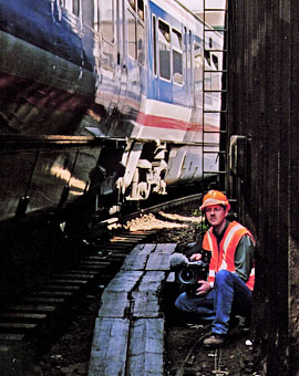 Bickerdike - director/cameraman and resident at the Victor Meldrew Home for the Terminally Exasperated - would always go that extra mile for a memorable shot. High voltages and tight spots proved no deterent. Next Rogues' Gallery Front Page